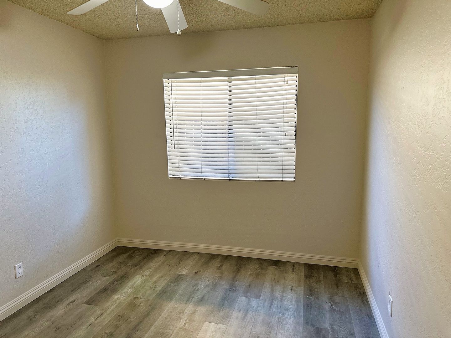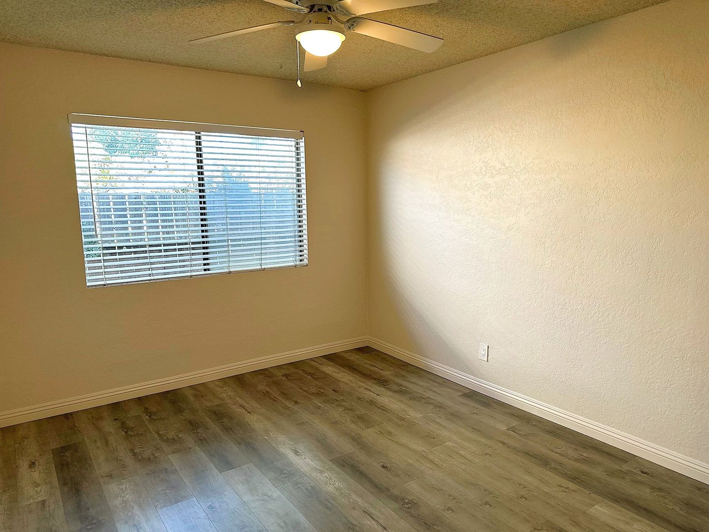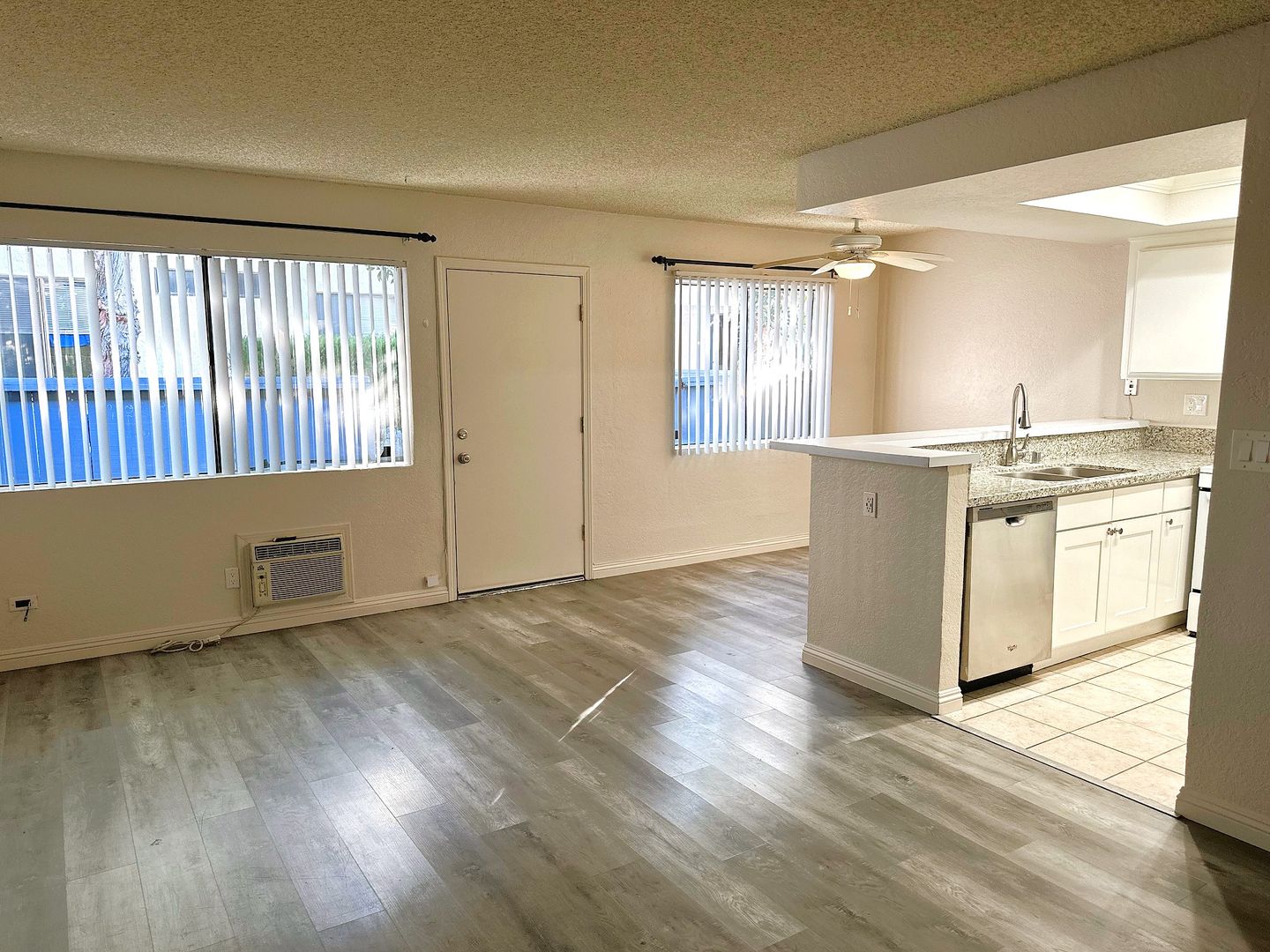 Charming 2-bedroom, 1-bath apartment offering nearly 1,000 sq. ft. of well-designed living space. Step inside to find stylish vinyl plank flooring throughout the living room and both bedrooms, creating a modern and easy-to-maintain environment. Large windows fill the home with abundant natural light. The spacious bedrooms feature ceiling fans for added comfort, while the well-appointed kitchen provides ample cabinet and counter space. Enjoy the outdoors on your private patio and stay cool year-round with a convenient wall A/C unit. Additional perks include a one-car garage, on-site laundry room, and water included in the rent. One year lease, one month deposit. Qualifying income and credit a must. This property wont last long.