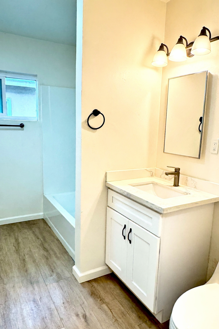Welcome to this charming upstairs end-unit 1 bedroom, 1 bath apartment ideally located near Santa Ana Community College. Filled with natural light, this home has been freshly painted and recently remodeled, offering a clean and modern feel throughout. Enjoy easy-care vinyl wood-style flooring and an updated kitchen featuring sleek quartz countertops. The spacious bedroom provides comfortable living, while the full bathroom includes a tub/shower combination. Trash service is included, and on-site coin-operated laundry adds everyday convenience. 12-month lease, one assigned parking space is included, no pets and no smoking permitted. Rental requirements include good credit and verifiable income for all applicants. Don't miss out, schedule your tour today!